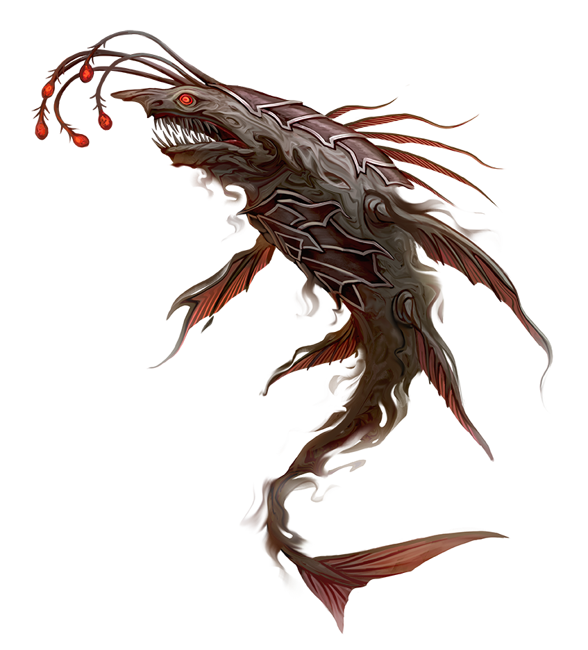 Nasurgeths are hungry voids with glowing eyestalks and thousands of teeth. They lurk deep beneath the waves where the sunlight doesn't reach. At night, they ascend to the skies and rain destruction and ruin down on all the living.