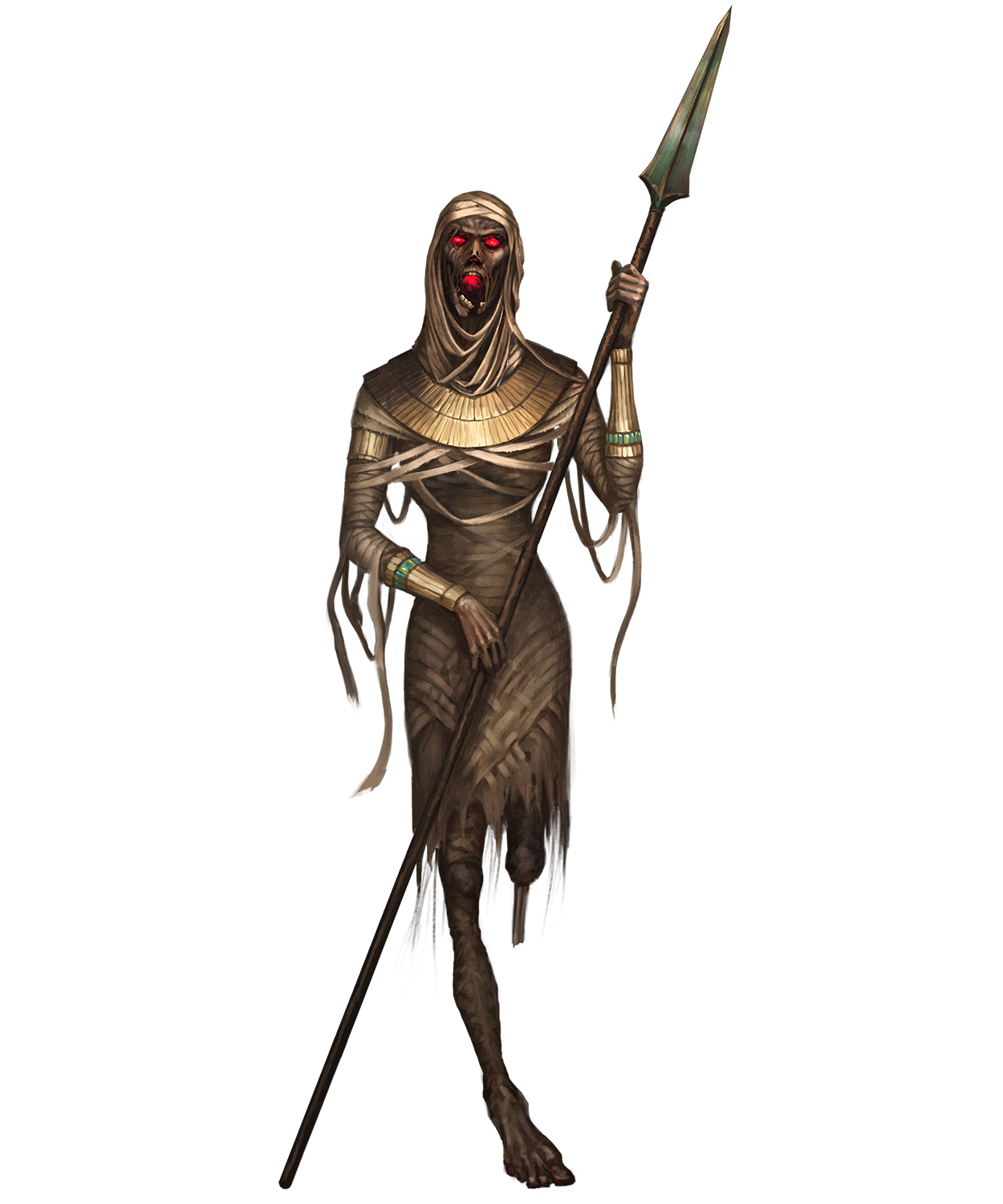 While many cultures practice mummification of the dead for benign reasons, undead mummies are created through foul rituals, typically to provide eternally vigilant guardians.