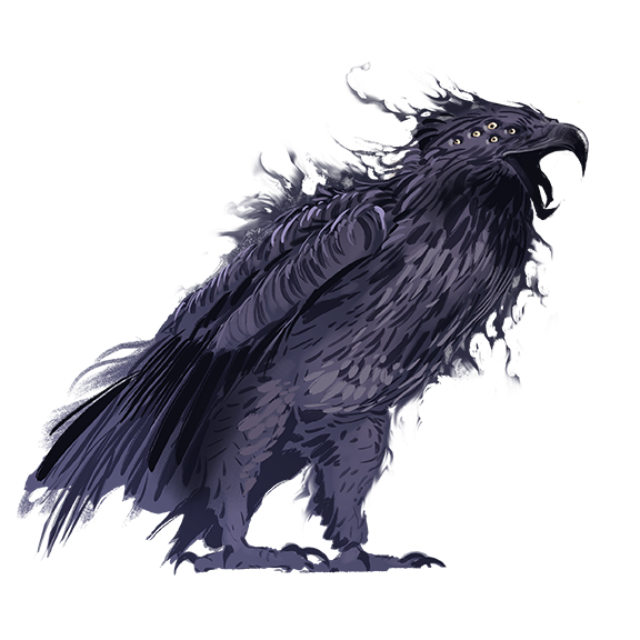 An umbraex appears at first glance to be a massive, majestic bird, much like a phoenix. Instead of compassion and warmth, however, it seethes with cold and hate. The umbraex is among the largest of the nihilistic undead called darvakkas.