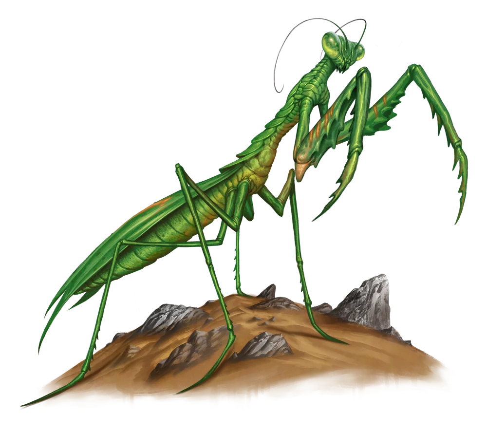 Melee [one-action] leg +12 [+8/+4] (agile, reach 10 feet), Damage 1d10+5 piercing plus Capturing GrabMelee [one-action] mandibles + 12, Damage 1d12+5 piercingCapturing Grab [one-action] This ability functions as Grab, plus on a success, the mantis can choose to pull the creature adjacent to it, then makes a mandibles Strike against the creature. This extra benefit doesn't apply when the mantis maintains the Grab.Lunging Strike [two-actions] The giant mantis lunges forward, making a leg Strike with an extended reach of 20 feet. If it hits, the mantis can use Capturing Grab after the Strike even if the creature is out of reach.Sudden Strike On the first round of combat, creatures that haven't acted are off-guard to the giant mantis.