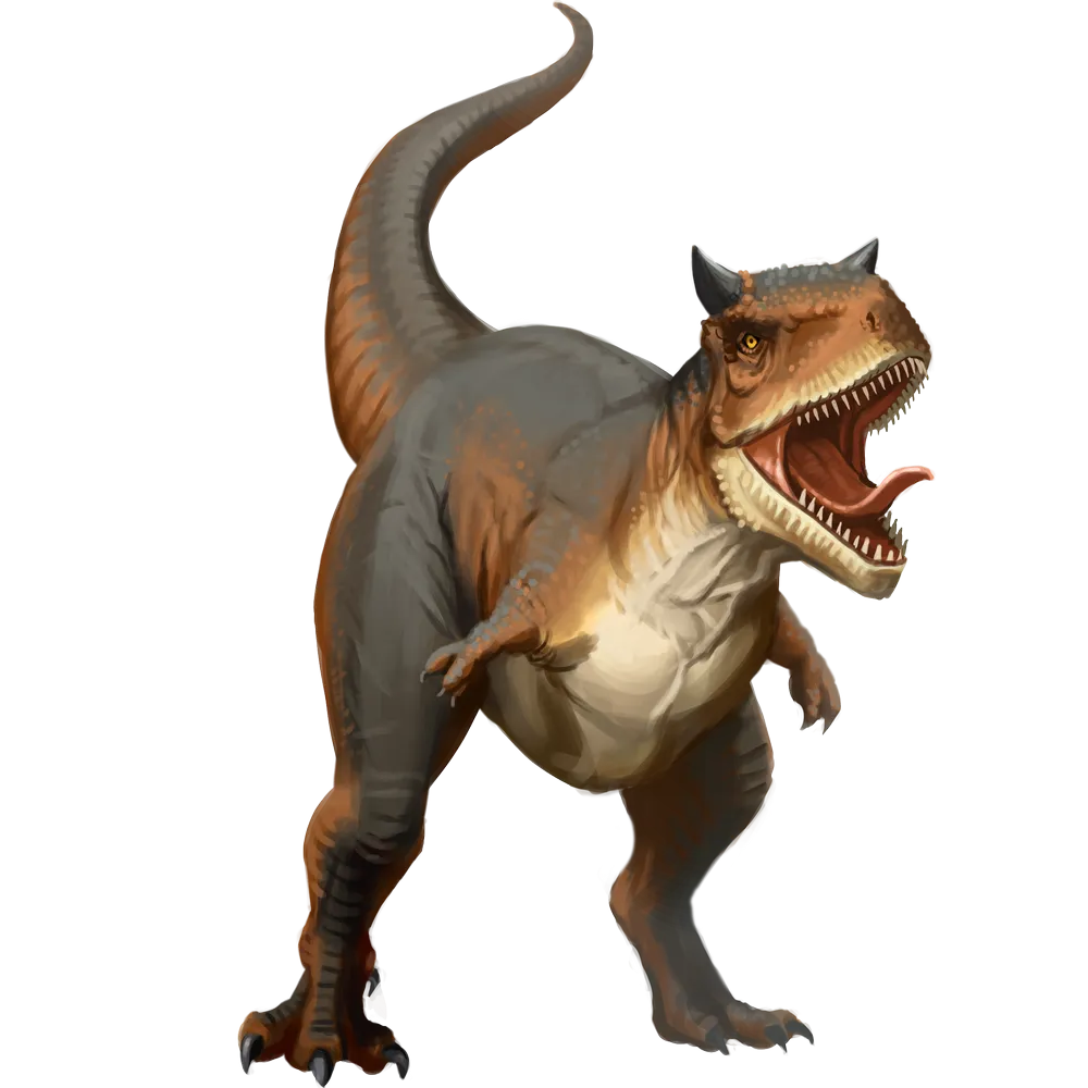 This 2,000-pound predator lives up to its name by ramming its prey with its distinctive horns lowered, knocking them prone, and viciously tearing into fallen victims before they can regain their footing. Do not let its size fool you; this massive dinosaur is deceptively quick when charging a potential meal. Aggressive and highly territorial, a carnotaurus will not hesitate to hunt down and slay any creature unlucky enough to cross its path.