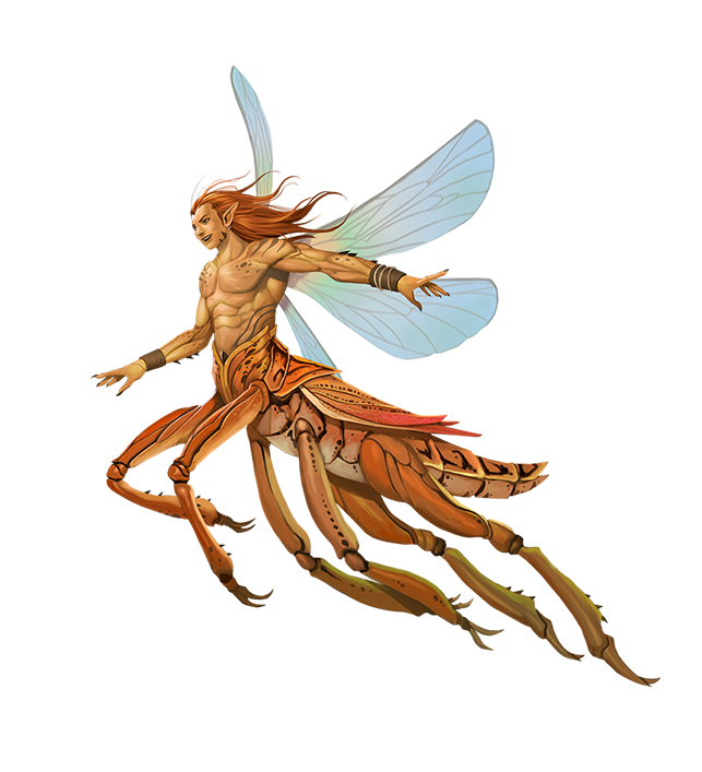 Elusive, flighty, and ebullient, sprites are what many villagers first imagine when they hear the terms “fey” or “fairy.” While their dispositions vary from the benevolent grig to the trickster pixie, all sprites share a connection to magic and diminutive size. This family of fey shares its name with its slightest and most populous member, the common sprite.