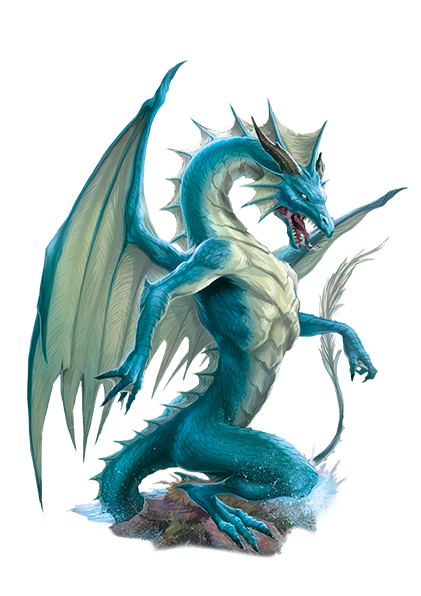 Brine dragons are usually blue-green in color, with shiny scales, crests that help them glide through the water, and sweeping neck frills. They care little for either good or evil. As they are both opinionated and willing to impose their sense of order on others, many brine dragons eventually seek to rule over a meticulously crafted community. These communities are orderly and well-planned, with rigid standards of courtesy and unchanging laws set down by the dragon themself. A settlement seeded by a brine dragon can be made of members of almost any ancestry, but the most common inhabitants are humans, merfolk, tengus, or sahuagin.