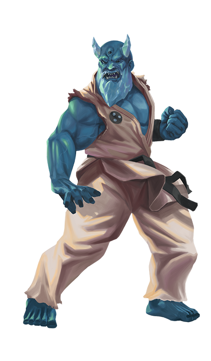 Ice yai combine the brutality of frost giants with the grace of martial artists. More than any other oni, ice yai delight not in the pleasures of the flesh, but in flesh itself—rather than indulging in oft-destructive mortal vices like drink or lust, ice yai pursue physical perfection, reveling in the process of turning their bodies into powerful fighting machines.