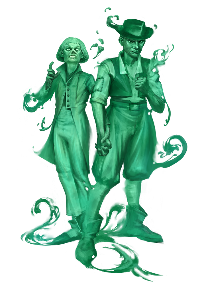 In some cases, several creatures that perish together form a more powerful binumir. These binumirs are generally Large or Huge and have thematic abilities based on the group. For example, a binumir arising from an order of slain monks might have ki abilities or ghostly strikes.