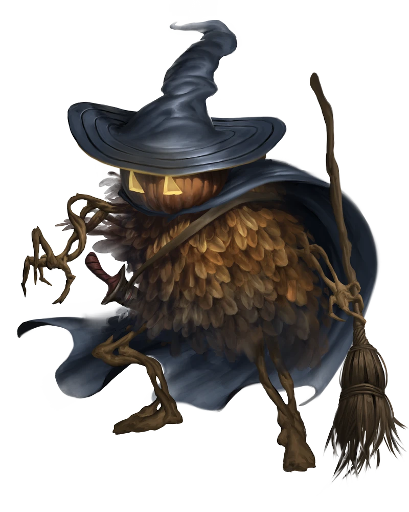Some spooky leshies learn the ways of occult spellcasting from strange spirits of nature that lurk just out of sight or under cover of darkness. These witches treat their brooms as their familiars, imbuing the wood and straw with a sliver of sentience.