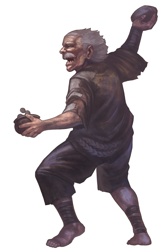 Melee [one-action] fist +5 [+1/-3] (agile, nonlethal), Damage 1d4+1 bludgeoningRanged [one-action] rock +5 [+0/-5] (thrown 10 feet), Damage 1d4+1 bludgeoningBeat a Retreat [two-actions] The beggar Strides three times and gains a +2 circumstance bonus to AC during those actions.