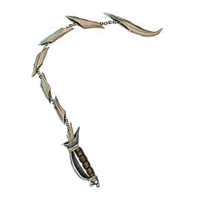 This weapon has a hilt like a longsword attached to several bladed segments connected by chain links. A highly technical weapon, the chain sword is valued by duelists and experienced soldiers alike in the nations of Nirmathas and Molthune.