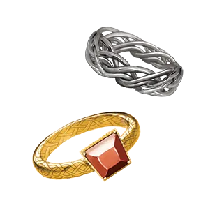 This item consists of two magically linked rings: an intricate, gleaming golden ring with a square-cut ruby, and a thick, plain iron ring. When you wield a melee weapon in the hand wearing the golden ring, the weapon's fundamental runes are replicated onto any melee weapon you wield in the hand wearing the iron ring. (The fundamental runes are weapon potency and striking, which add an item bonus to attack rolls and extra weapon damage dice, respectively.) Any fundamental runes on the weapon in the hand wearing the iron ring are suppressed.