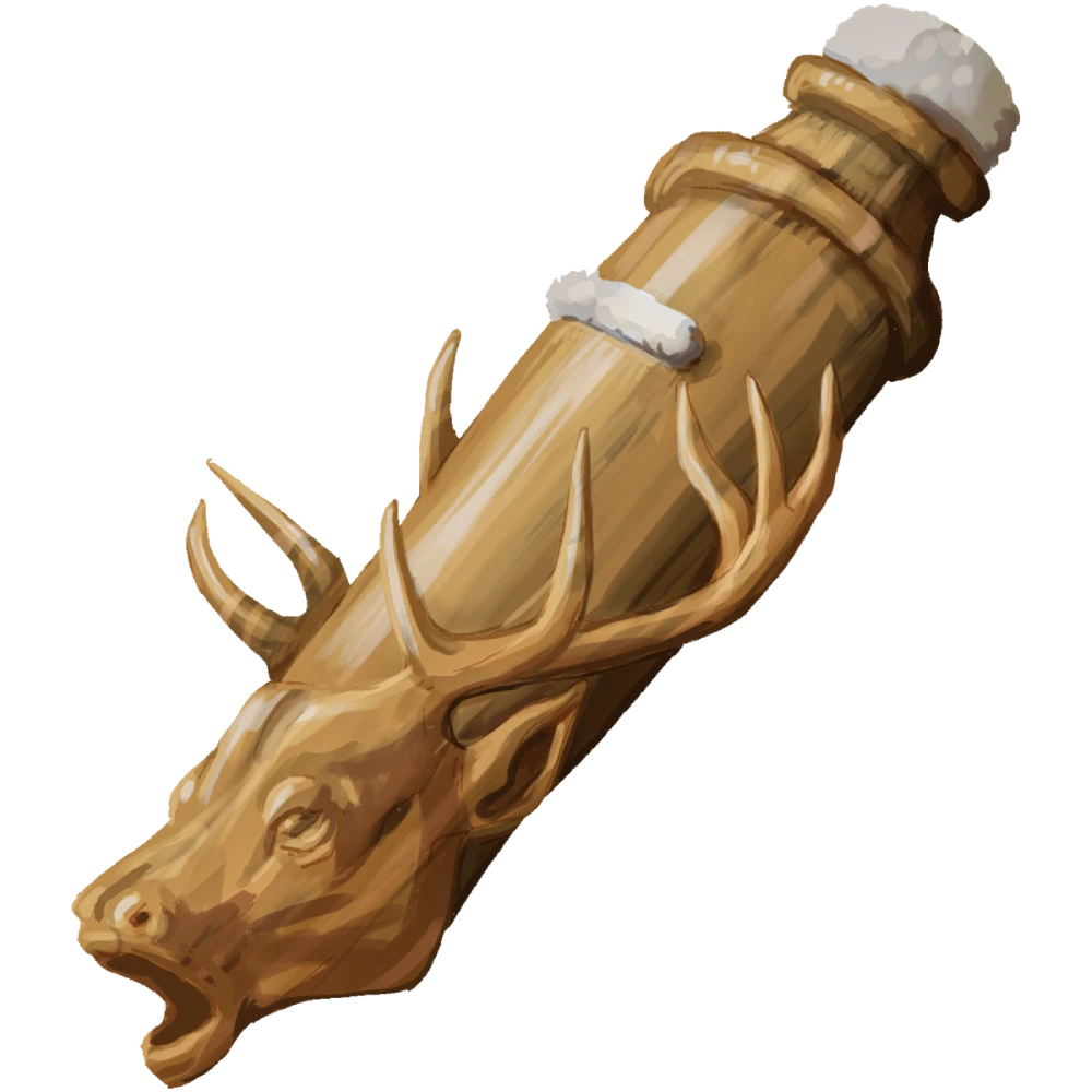 This wooden whistle is stuffed with cotton and carved with images of bellowing stags, howling wolves, and chirping birds. You can blow on this whistle to use it as a catalyst when casting an animal form spell. When you do, you gain the listed benefit for the duration of the spell.