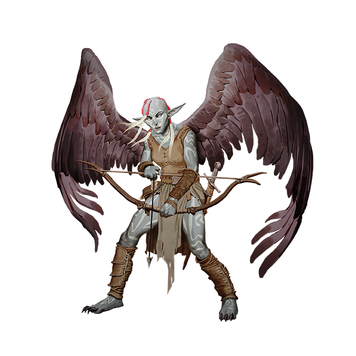 Oral tradition tells that the strix who live among the spires of Devil's Perch, an area in the southwest region of Cheliax's Menador Mountains, were banished there by a massive storm as punishment for an ancient, forgotten transgression. Strix communities debate whether this curse still haunts their people. Those that believe so cite the endless bloody conflict between the strix tribes and the nearby humans, who regard the strix as winged devils to be purged from their territories. Due to strix's deep emotional connection to each member of their tribe, any strix life taken by human hands leads to swift retaliation, which humans use to paint strix as monsters. This cycle of retribution, along with continuous loss of strix land, has bred generations of hatred.