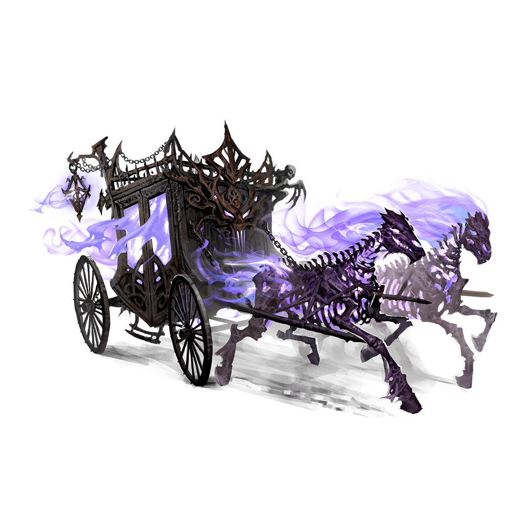 Soulbound Gallop When a death coach has Collected a Soul, its Speeds double.Trample [three-actions] Large or smaller, incorporeal wheel, DC 34