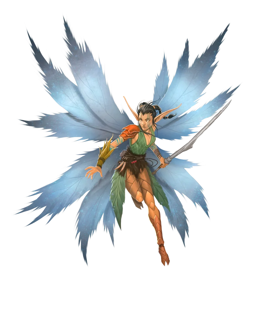 Elusive, flighty, and ebullient, sprites are what many villagers first imagine when they hear the terms “fey” or “fairy.” While their dispositions vary, all sprites share a connection to magic and a diminutive size. This family of fey shares its name with its slightest and most populous member, the common sprite.