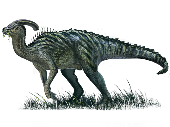 The different species of hadrosaurids all use the same statistics. While some species have no cranial crest at all, those who do, such as the distinctive backward-curling crest of the parasaurolophus, are capable of vocalizing sonorous and haunting calls when they seek the attention of a mate or warning their herd of a predator's approach.