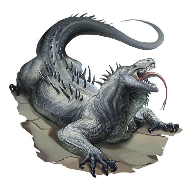 The three species of giant lizard presented here are but the most common of their kind encountered in the wilds. Stories of much larger lizards persist, including the immense, 20-foot-long monster known as a megalania, a truly enormous version of the giant monitor lizard capable of swallowing creatures whole. Less dangerous is the giant chameleon, although its ability to blend into its environs makes it a much more insidious and stealthy threat than the lumbering, mighty megalania.