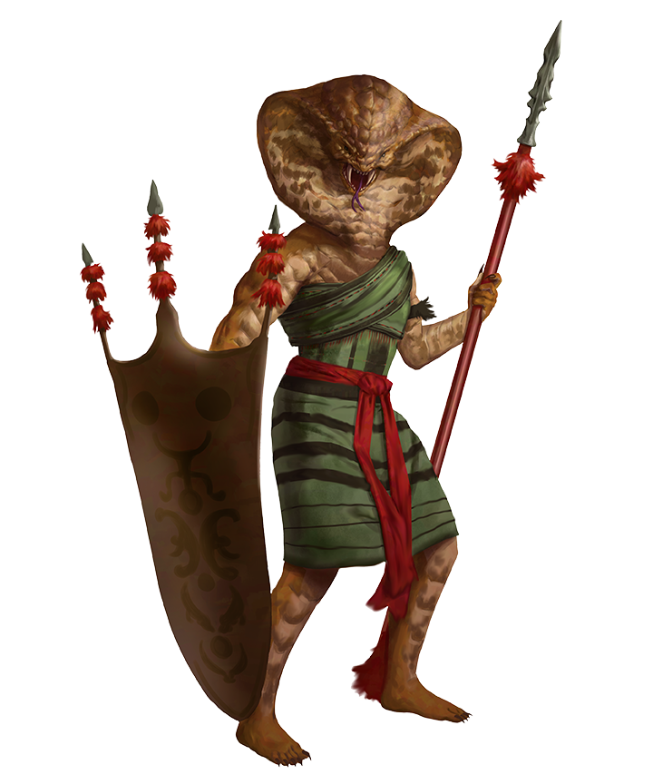 With humanoid figures and serpentine heads, nagaji are heralds, companions, and servitors of powerful nagas. They hold a deep reverence for holy areas and spiritual truths, an aspect many others find as intimidating as a nagaji's appearance.