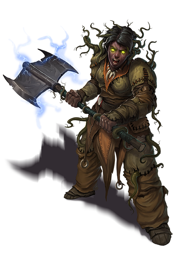 A fetch is a twisted, deviant simulacrum of a humanoid creature that exists or existed at one point on the Material Plane. Rumors of fetches that are reflections of entities from other planes persist, but none of these tales speak of fetches that duplicate anything other than a sapient source. A fetch can manifest spontaneously when a powerful creature undergoes a significant emotional event or dies, either while on the First World or while in an area significantly influenced by the First World, but one can also be created by significant forces like the Eldest in order to torment and vex those who have annoyed them. While a fetch manifests from a soul's “reflection,” and as such bears a striking resemblance to that creature's appearance in life, a fetch has no true memories of its own. It keeps fragments of false remembrances from its source as if it experienced them in a half-remembered dream—which ensure the fetch is enraged by and jealous of its source.