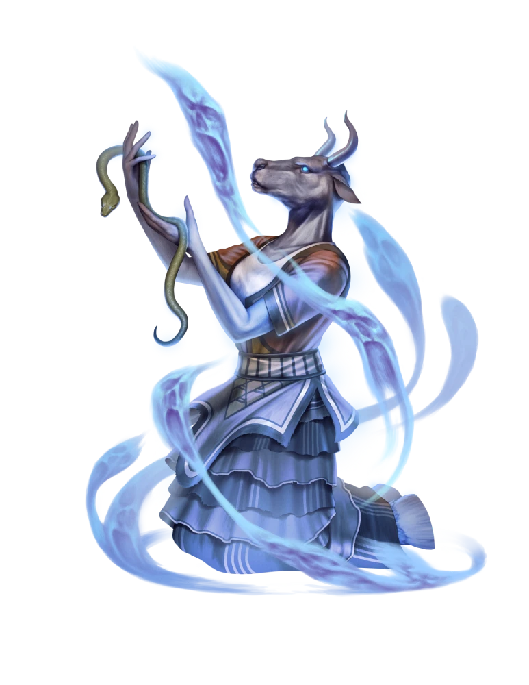 Minotaurs raised by their own people tend to avoid association with deities of any stripe—little surprise given their creation legend. Divine beings are thought of as petty and uncaring, if not by intent then by the sheer magnitude of their power. Many minotaurs adopt logical or spiritual philosophies as a way of reconciling their existence. Mysteries are puzzles yet unanswered, ones that can be explained with careful thought and study. When minotaurs decide to follow deities, they're primarily drawn to those concerned with self-improvement and self-control, like