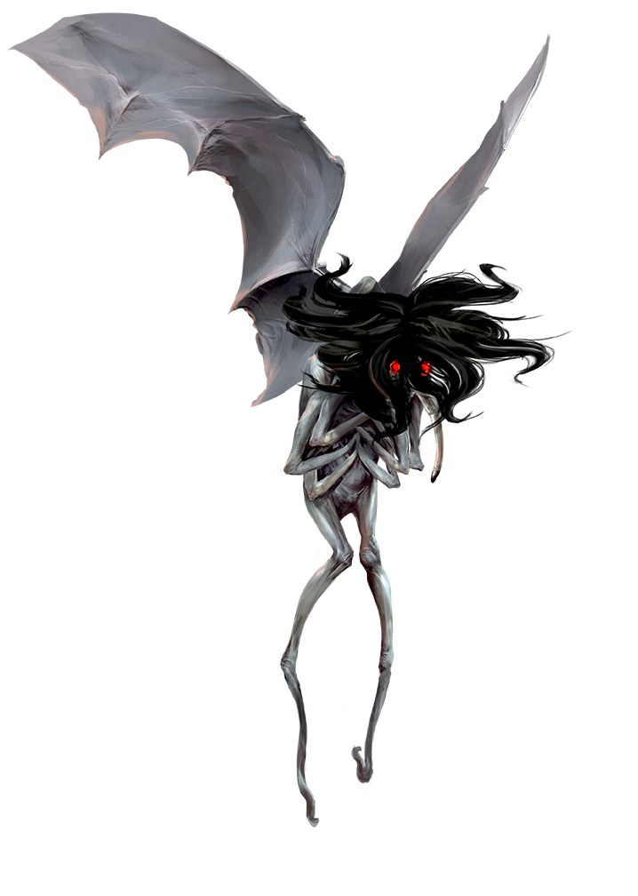 This Mosquito Witch rarely acts with outright malice or to bring direct harm to those around her. However, her haunting appearance, alien values, and tendency to express emotions with sky-blotting swarms inspires terror in her neighbors. Depending on the circumstances she might represent a fearsome and ineffable ally, a demigod of fecundity, or a terrible foe who long ago lost patience with humanity.