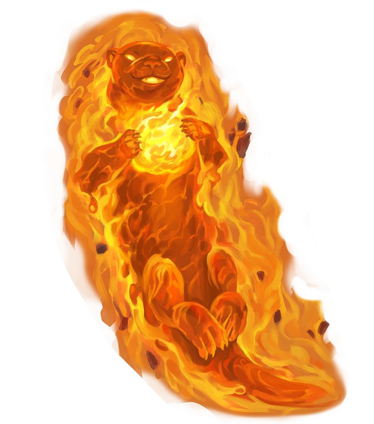 These fiery otters frolic and hunt in the lava streams of the Plane of Fire. They're known to be highly territorial, instigating fights with rival otter families to compete for territory. Cautiously curious of strangers, entire packs have been known to descend upon anyone who attacks or event accidentally threatens a family member.