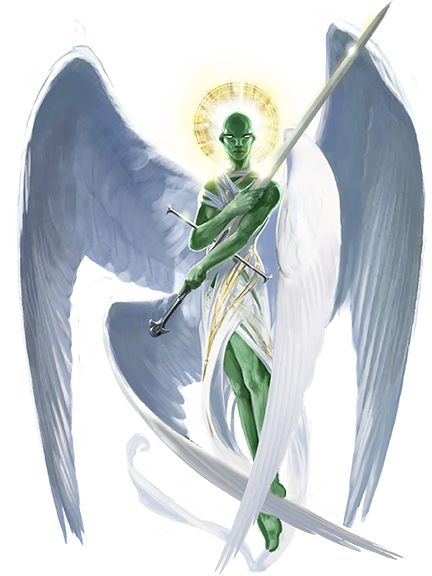 The most powerful angels are known as the solars, but numerous others can be found in Nirvana working their own missions or goals. Angels generally appear as beautiful, often somewhat androgynous humanoids, and the most powerful often possess two or even four sets of feathered wings.