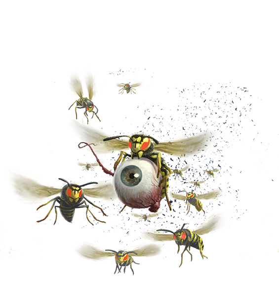 Hellwasps' infernal nature allows them to collectively inhabit and control humanoid corpses, and they use this ability to infest and horrify large swathes of territory unless destroyed. While individual hellwasp poses little threat, these fist-sized insects instinctively form into aggressive swarms that will viciously attack any creature approaching their colony, the lone exception being powerful fiends.