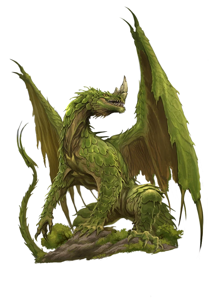 Horned dragon lairs are generally found within forests and swamps, but these sites can vary. Some horned dragons keep lairs within caves; others within hollowed trees or underneath the roots of large tree systems; some dragons even keep lairs among forest canopies. Their hoards are typically well kept, organized, and filled with tomes of lore and scrolls of magic, along with antiquities they collect for their own inscrutable reasons. Many of these treasures come from across the globe, and many an adventurer has survived an encounter with a horned dragon by stroking their ego and plying them with rare artifacts or lost lore from ancient cultures.