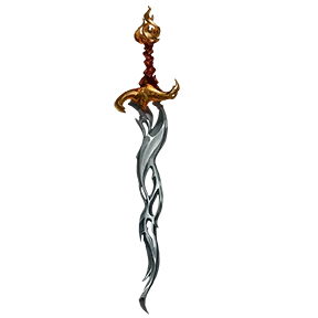 This +2 greater striking flaming longsword has an ornate brass hilt and a blade shaped like stylized flames. When wielded, the blade projects illumination resembling shimmering firelight, emitting dim light in a 10-foot radius.