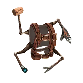 This strange and intricate harness fits snugly to the torso. Once you invest the apparatus, numerous artificial limbs with various tools, clamps, and lenses whirl into action, following your mental commands effortlessly.