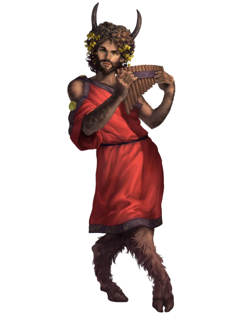 To a satyr, life is a party and everyone is invited. Notorious for their hedonism, these fey believe there's no greater beauty than can be found in song, drink, indulgent meals, and carnal pleasures. Satyrs use their enchanting songs and natural charm to encourage all manner of people to follow their true desires and free themselves from society's rules. This usually involves enticing mortals to join raucous parties or engage in trysts in moonlit glades. If a potential companion rejects a satyr's advances, however, the satyr has little interest in continuing a conversation and goes off to find more amenable revelers.