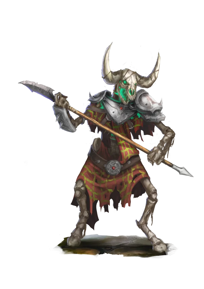 The necromantic energies that infuse animated undead skeletons give them the ability to see without eyes and move without muscles. Despite being mindless, skeletons' instinct to do evil comes from their corrupt vital essence, perverting void energy for creation rather than destruction.