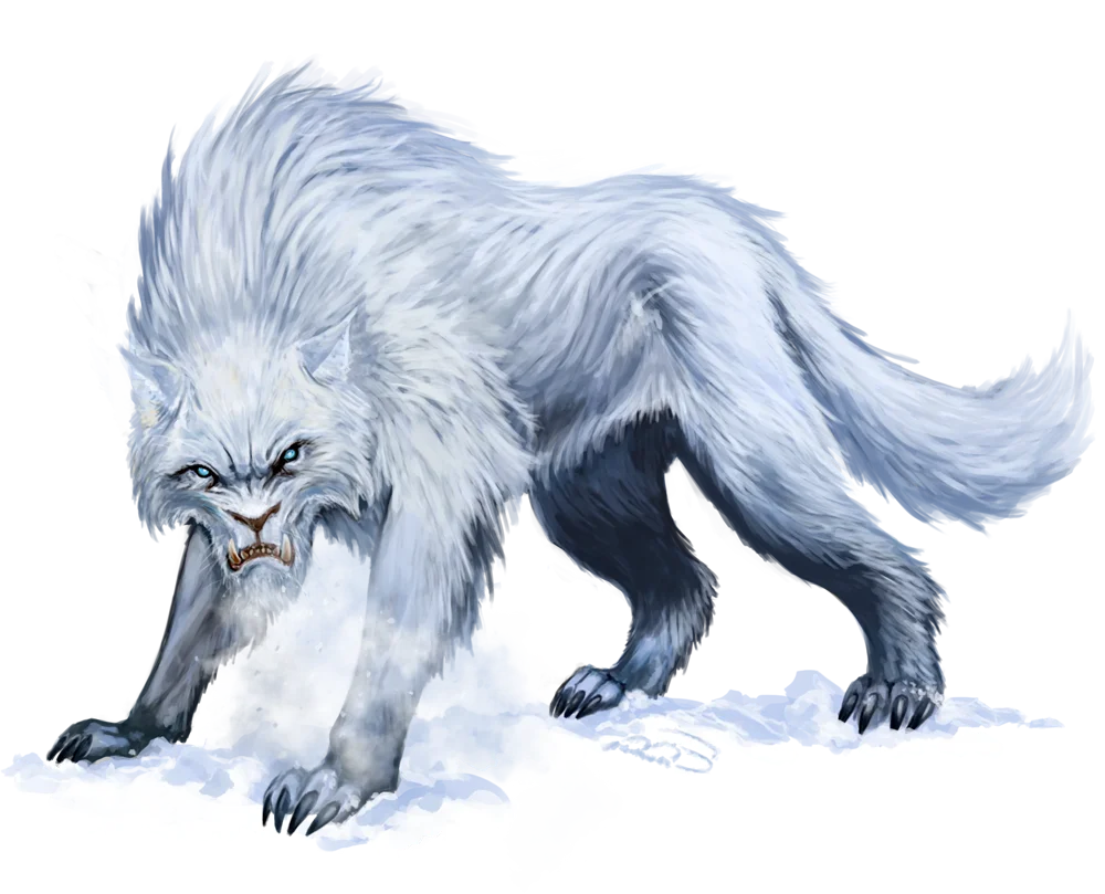 The warg is an intelligent and malevolent wolf that dwells among goblins, hobgoblins, orcs, and violent humanoids.