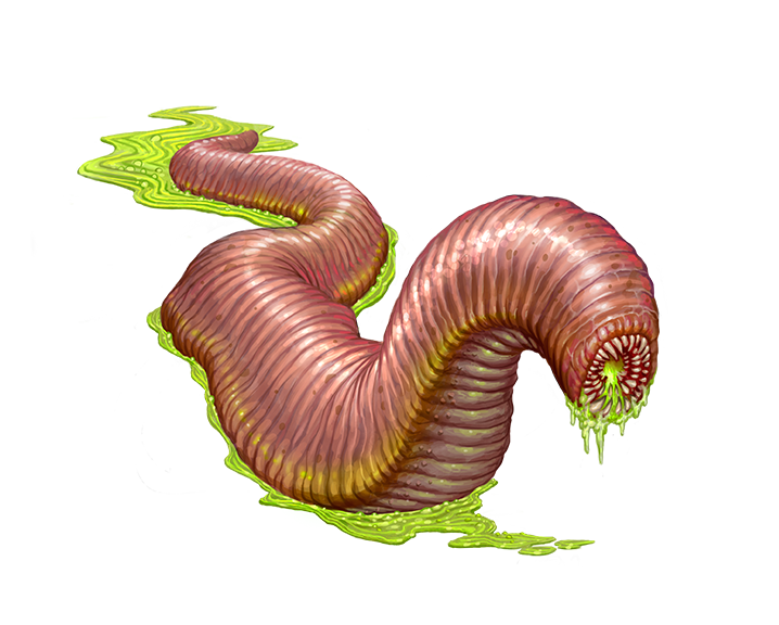 These Darklands vermin produce corrosive, noxious slime and deliver agonizing bites, whether as a revolting, wriggling swarm of finger-length worms or a single massive, lurching beast. Among Darklands communities, most inhabitants regard bore worms much in the same way surface cultures speak of maggots or cockroaches—with general disdain and revulsion. Children consider catching a single bore worm and using it to torment others a rite of passage, albeit a dangerous one.