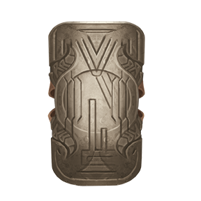 This tower shield is a slab of limestone, shaved to a portable size and weight. The shield has Hardness 7 and 28 Hit Points.