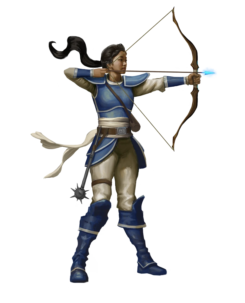 Spiritual Arrows [two-actions] (divine, evocation) Frequency once per day; Effect The shrine maiden nocks an arrow and whispers a chant before unleashing a torrent of holy power in the form of dozens of ghostly glowing arrows. Creatures in a 60-foot line take 10d6 force damage (DC 28 basic Reflex save). On a critical failure, the creature is also immobilized (Escape DC 28) for 1 minute.Twang [two-actions] (divine, evocation, manipulate, sonic) The shrine maiden strums her bowstring, creating a pulse of energy that lashes out at a target within 20 feet. That creature must attempt a DC 28 Fortitude save.