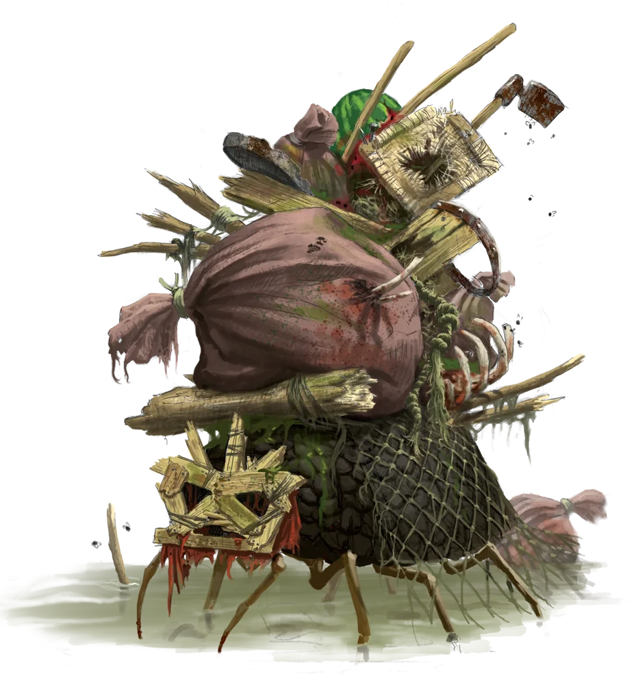 Found in castle dung heaps, city dumps, and sewers, ofalths are living amalgamations of wet detritus, sewage, and rubbish. They carry a disease called wretched weeps that causes the victim's blood to seep from its pores.