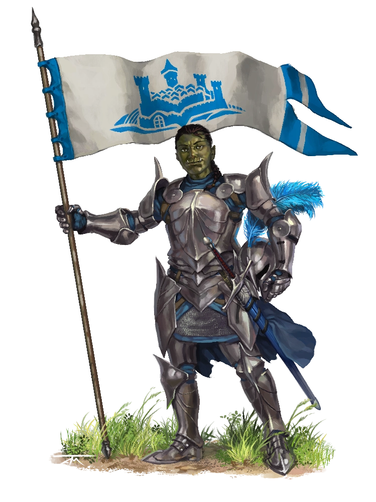 This magical banner is off-white with a depiction of a stronghold that’s often colored in a striking blue. Those who stand under the banner are prepared to face the weapons of war and defend their keep until the end. You and allies within the banner’s aura gain resistance 5 to damage from siege weapons.
