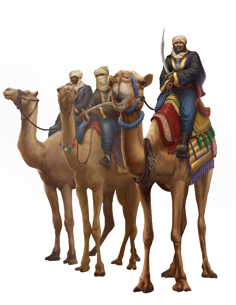 Navigating the deserts of Golarion requires trained individuals and often specialized mounts to keep them safe. The Qadiran camel corps are one such example of those who embark on long patrols, hunt down brigands, and dispatch any natural threats that might trouble travelers.