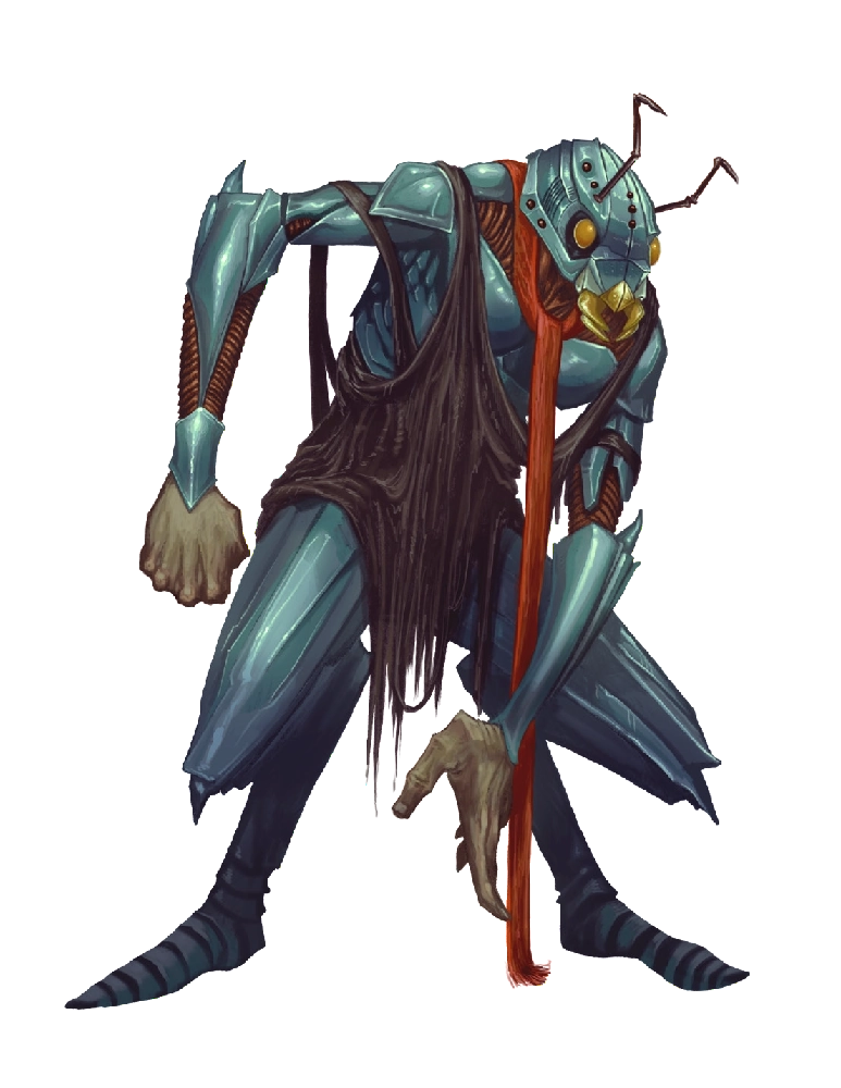 Very rarely, when sinspawn sacrifice sentient beings to runewells, instead of sinspawn, an altogether different sort of aberration is created. Atrixyls are insectile humanoid warriors, whose powers are similar to yet stronger than ordinary sinspawn, and who are dedicated to destroying runewells and similar fleshwarping artifacts. Some atrixyls seek to destroy runewells due to an imprinting of pain and suffering that occurs during their creation, seeking to prevent future suffering from runewells. Others seek to break a runewell and tap into its magical energies to gain personal power. This relentless mission has earned them the epithet “runebreakers,” and brings them into conflict with the sinspawn whose existences depend upon these runewells.