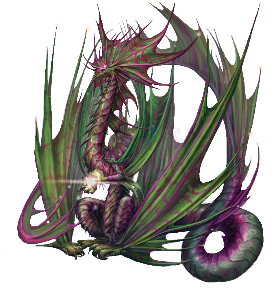 Mirage dragons are masters of illusion magic and use their powers to deceive others and further their own agendas. In addition to their magical prowess, mirage dragons possess a number of additional features to help them on hunts or mislead attackers, such as their camouflaging scales and a hallucinatory breath that can confound multiple foes at once. Mirage dragons are vain and egotistical figures. They ultimately care more about themselves than others.