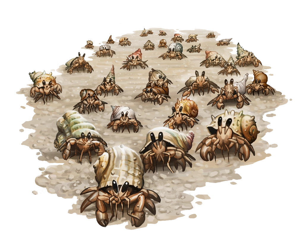 Crabs can be found along all the world’s coastlines, ranging from relatively small creatures like the king crab or coconut crab to truly oversized monsters like the great reef crab, shark-eating crab, or lumbering shipwrecker crab.