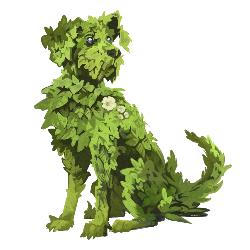 Topiaries are an extremely common sight across Golarion, especially within the gleaming and well-manicured lawns of nobility. Living topiaries develop from the death of a lone soul in an overgrown area of deep primal magic, with the soul exploding into the plants around it and causing them to grow together into the form of an animal, often influenced by the personality of the dying person. Once fully formed, the living topiary lacks their original memories; however, they're filled with the desire to protect the area they were formed in, driving off invaders and those who would do harm to the flora and fauna.