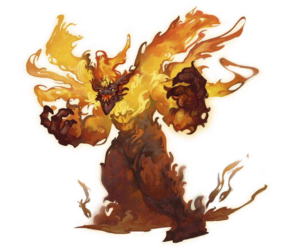 Over the eon of Lord Atreia's imprisonment inside the Garnet Brand, temples to the Lambent King lay dormant and decaying across the Plane of Fire, and within those temples, his children, known as ygnaires, began to fade. Without the light of their Lord of Fire, these elementals who waned became known as anguished flames. They eventually turned to unmoving bronze, frozen until Atreia's light shone down on them again.
