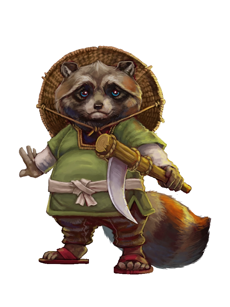 Tanuki are an ancestry of humanoids resembling raccoons or canids who live primarily in Minkai, in Tian Xia, though they are also found in Hwanggot and the successor states of Lung Wa. Tanuki outside of Minkai tend to be shier, keeping to their raccoon-dog forms and staying out of trouble, and so most people associate tanuki solely with the boisterous and mischievous communities found in Minkai.